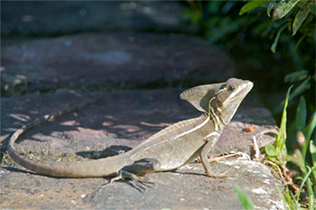 The basilisk is a very apt at swimming, running and climbing. They are known to use their speed in order to escape predation, but if threatened, they will utilize their powerful tail to whip violently. These lizards can amazingly stay under water for 30 minutes when trying to escape terrestrial predators. Unfortunately this leaves them susceptible to aquatic predators. During the night hours, the basilisk either sleeps in suspended vine thickets or within the thick underbrush. In daylight hours, they will often be spotted on sunny rocks soaking up the heat to warm their bodies.
