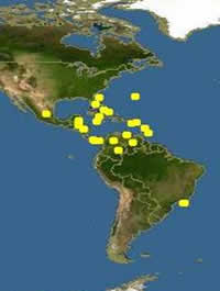 Distribution: Aruba, Belize, Bonaire, Caribbean Sea, San Andres, Cayman Islands, Jamaica, Colombia, Costa Rica, Cuba, Curaçao, Lesser Antilles, Mexico, Panama, Puerto Rico and Venezuela.