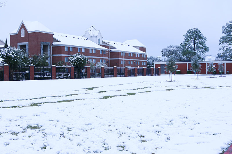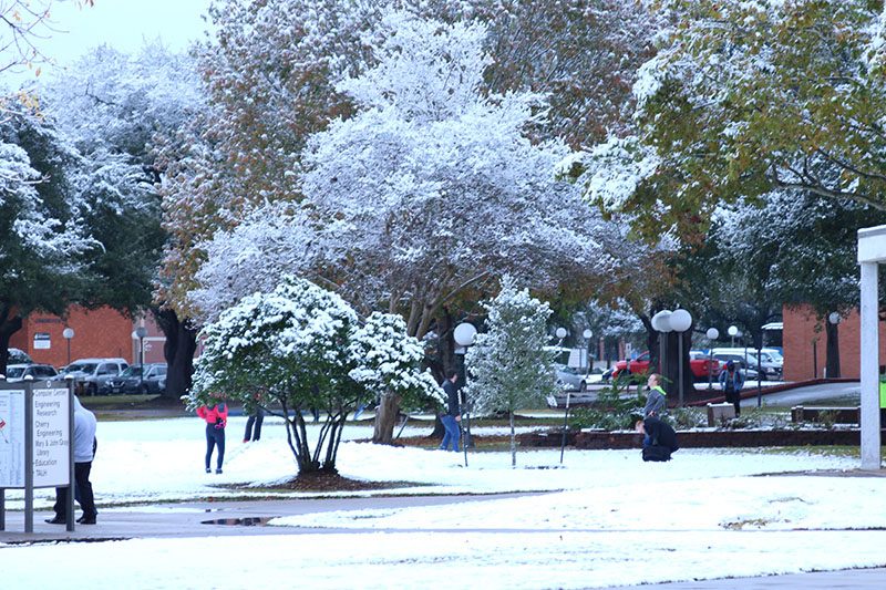 It rarely snows in Texas but on December 8, Lamar was covered with snow. Students built this snowman outside the residence halls.