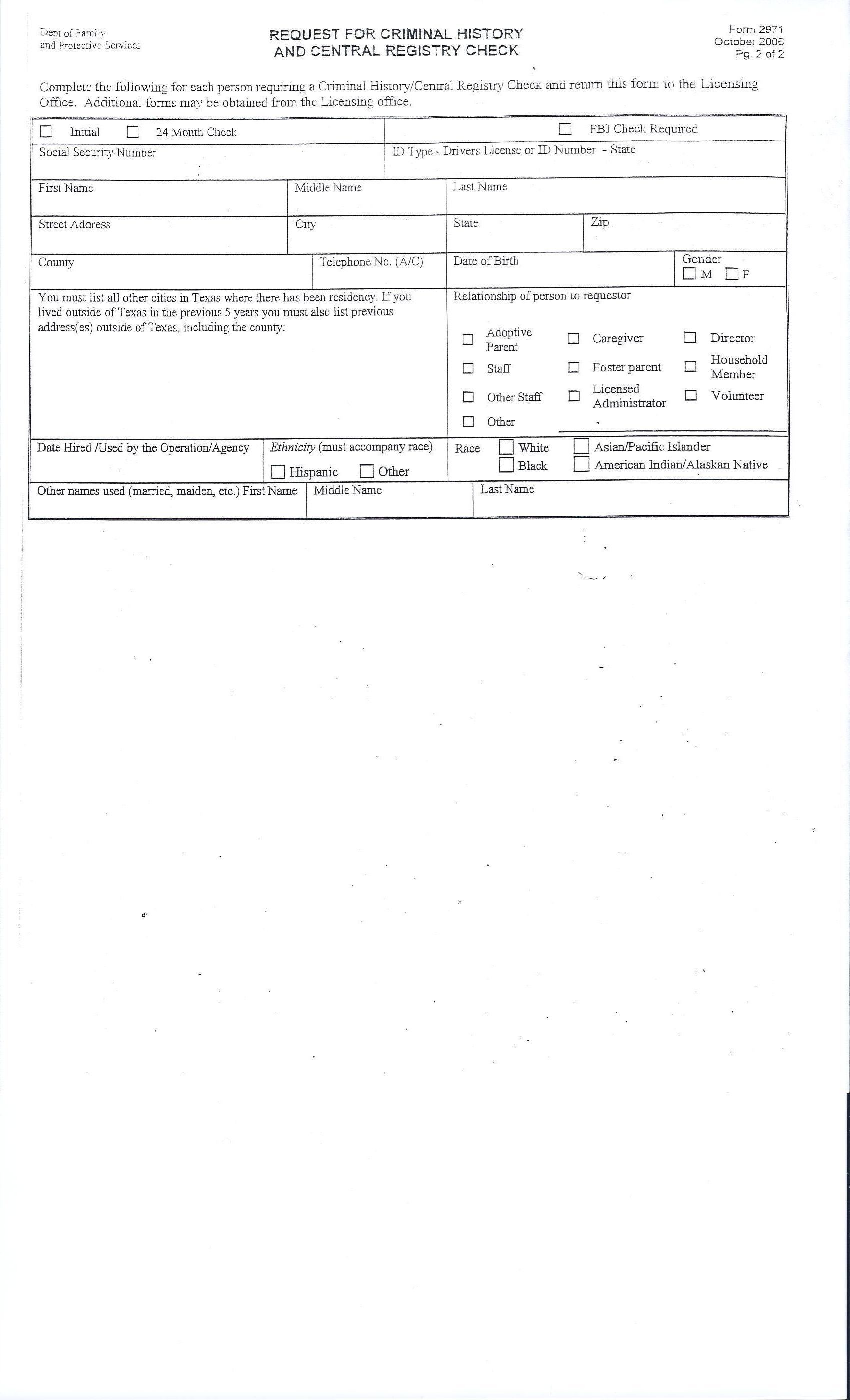 Request for criminal history and central registry check