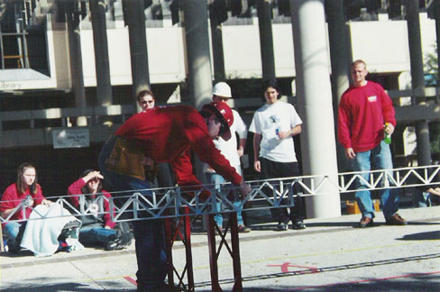 The bridge is built during the competition, then is load tested with 2,500 pounds and its deflection is measured. The winning bridge is based on its design, construction time, weight, deflection and economic practicality.