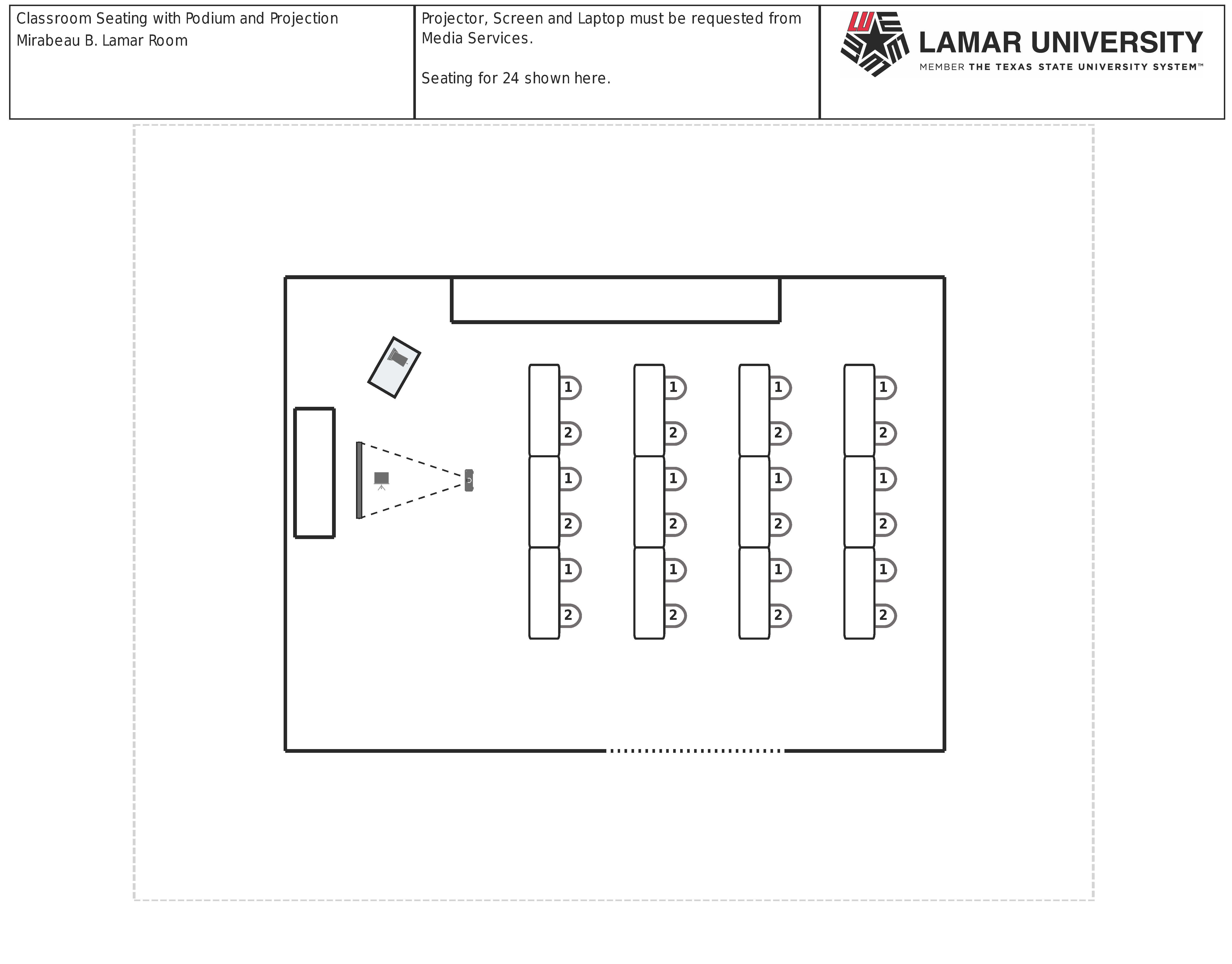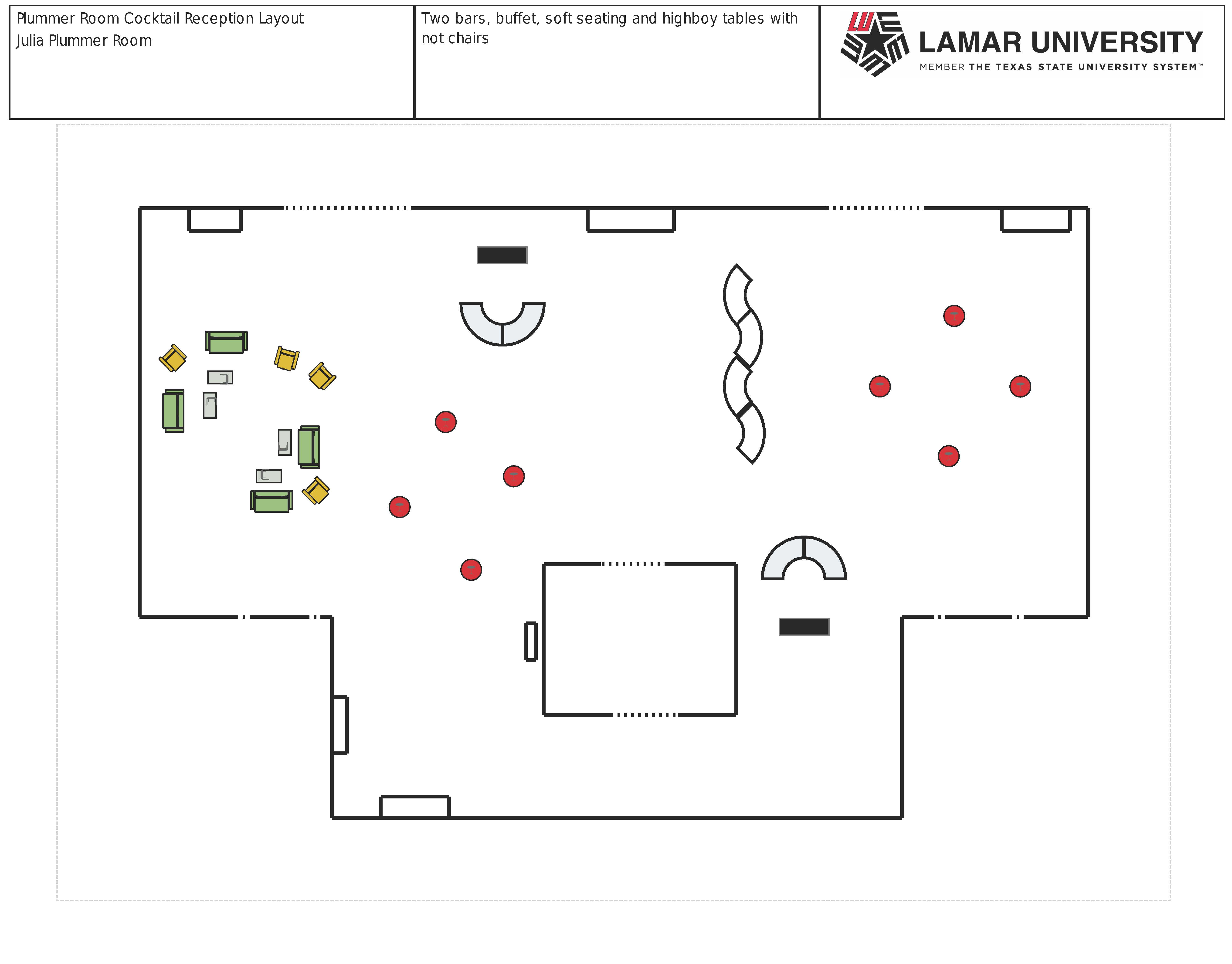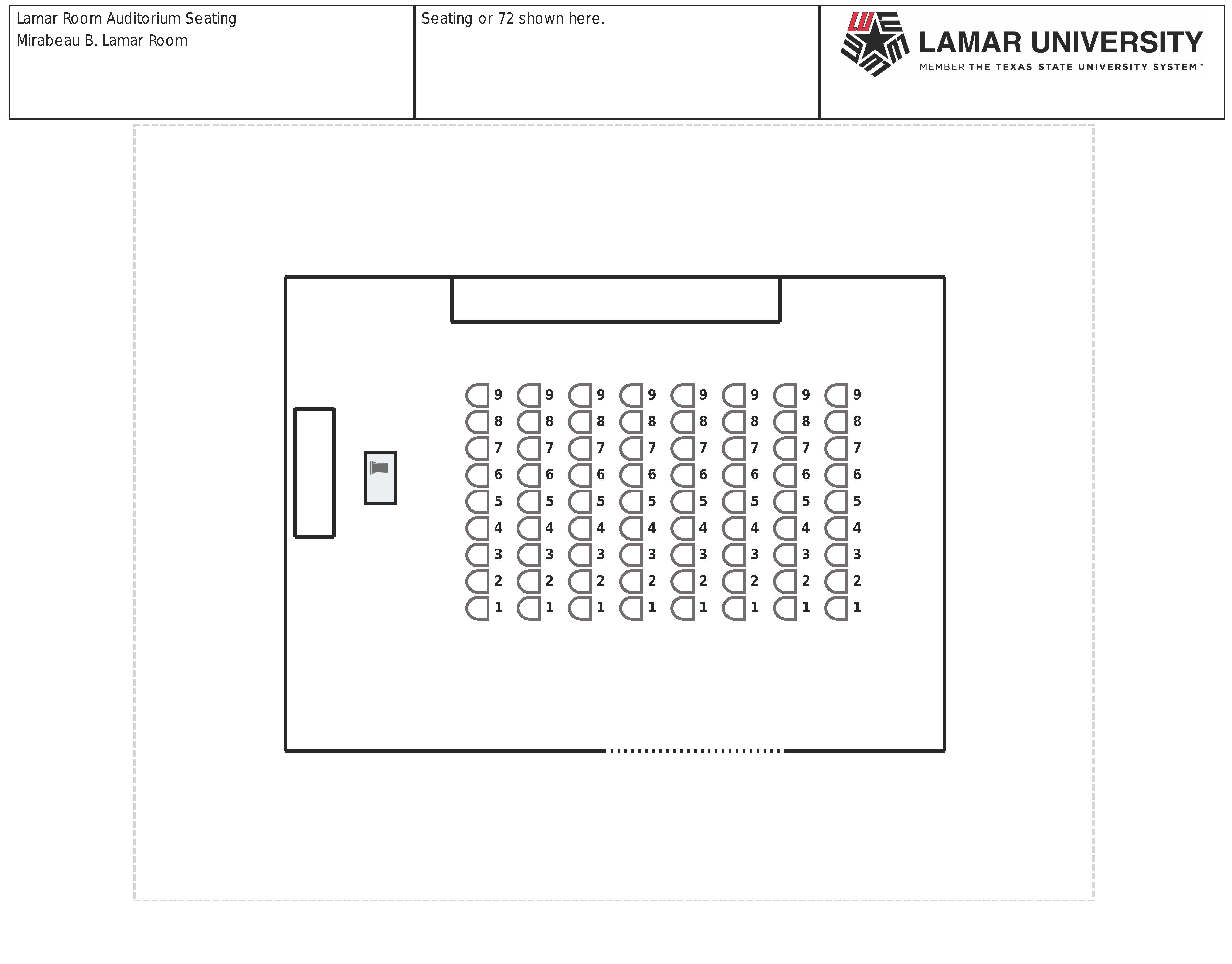 The following schematics illustrate the variety of options for setting up the rooms in the University Event Center. Please note that the examples shown below are intended only to illustrate setup styles- the number of seats or tables is not necessarily an accurate reflection of the Event Management inventory at a given time.