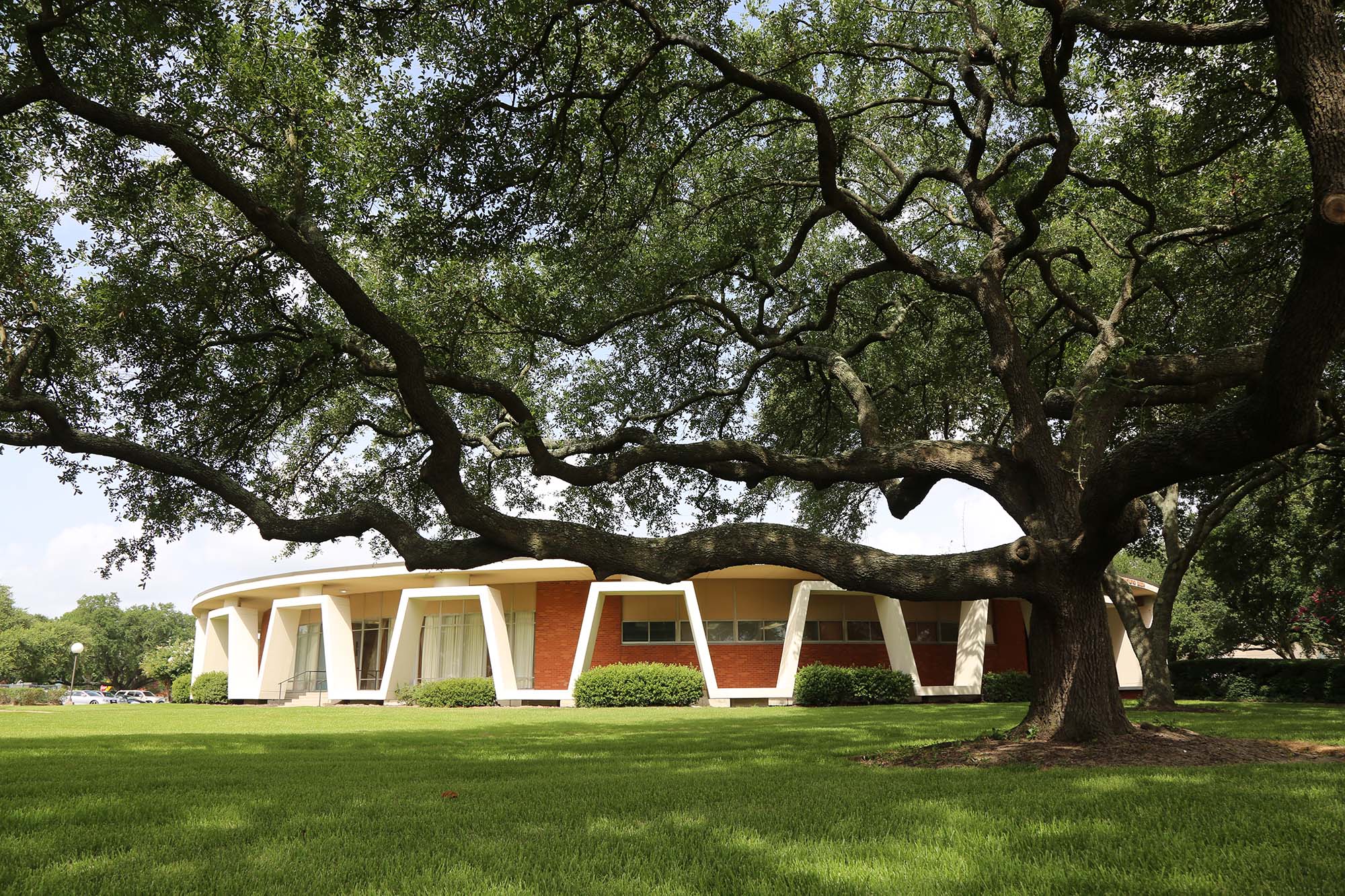 (round bldg on corner of