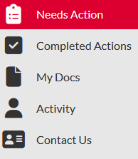 3. Once you are in your account, look for "Actions" to complete and follow the easy instructions that are provided to upload the proper documentation needed.