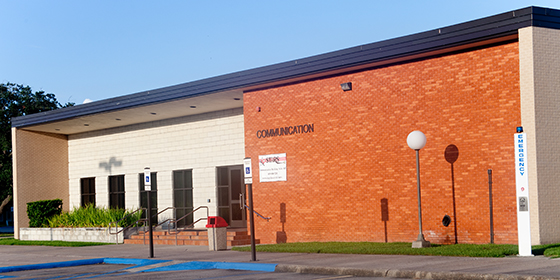 - The Communication Building is on the left at the end of the street, across the road from Brook-Shivers Dining Hall
