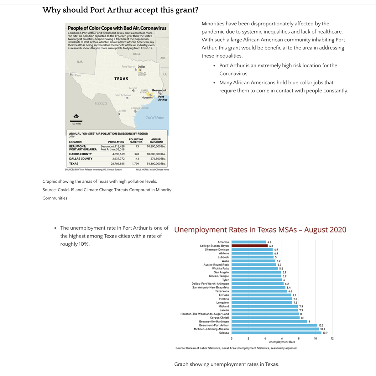 ePortfolio Project: "Combating COVID-19 Health Disparities in Port Arthur, TX"