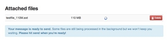 When large files are sent (with the HTML 5 method), they are split into 100 Mb blocks. All files are also scanned for viruses.