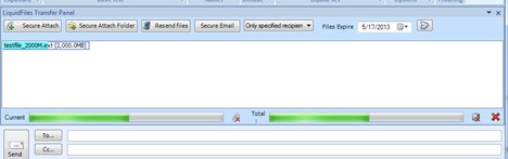 When you have selected a file to attach and send through LiquidFiles, another pane will open like this: