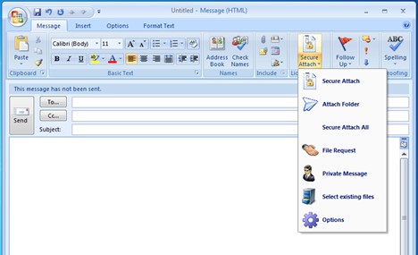 These are the selectable options in the LiquidFiles Secure Attach Dropdown menu: