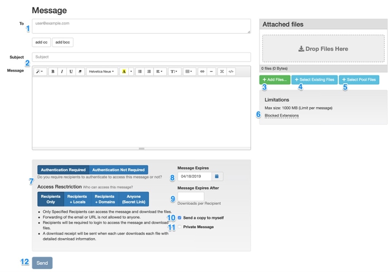 | Recipients + Locals | Yes | When each recipient downloads each file. | In addition to the specified recipients, any files sent may also be downloaded by any local users on the system by forwarding the email or sending the message URL. |