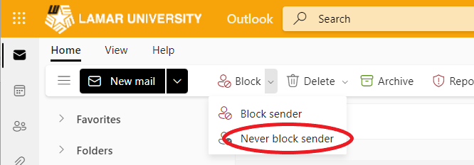 The Lamar Email system can identify and manage emails that appear to be junk, including permitting you to stop and report Spam.