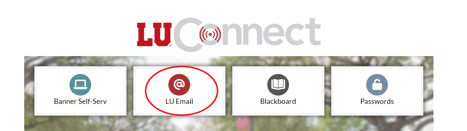 Step 1: Log in to Lamar's web email from a browser, by visiting lamar.edu > LU connect > LU Email. (Alternatively, visit luconnect.lamar.edu > LU Email).
