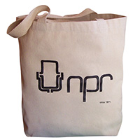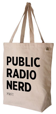 Natural recycled cotton tote imprinted on one side with the Public Radio Nerd logo. Proudly show off your inner nerd! Tote Features: 16" W x 15.5" H, 5" Gusset (Bottom), 10 ounce 00% recycled cotton, natural, 1" w x 9.5" L drop length handles, can hold more then a full grocery bag, machine wash cold, hand dry.