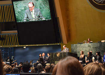 Once the conference was initiated by a speech from H.E. Motohide Yoshikawa, Permanent Representative of Japan to the United Nations, students worked alongside delegations from model UN programs spanning the globe—both in actuality and simulation.
