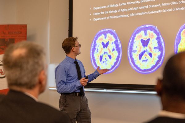 “Dr. Jurk's lab at the Mayo Clinic was primarily focused on something called cellular senescence, which is how cells react to harmful situations and change. Then at the Johns Hopkins, it was a lab on Alzheimer's disease, so it was branching backwards into the areas of how it gets there,” Thompson said. “And thankfully, you know, because it's specifically the interest group that I would pick the niche interest of neurodegenerative research that I loved. I had understood most of it, so a lot of the work they were currently doing is kind of like the same thing that we do here [at Lamar] but on a bigger level.”