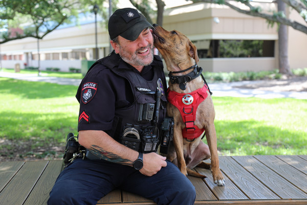 In February, the Lamar University Police Department (LUPD) brought a new member to the force, and the Catahoula Leopard dog named Derrick has quickly become a beloved member of the Lamar University community.
