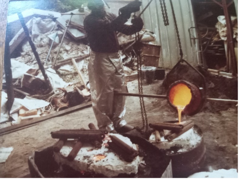 ‘The History Department approached me. First, we thought about doing a standing figure. Unless we did something really big, it would not be significant. I had the thought to do a big head. I did all my own cast. Actually, that was one of the first things I ever did. What to do, how to do…It took about six months to make the statue. Just a guess. You have to buy the metal from a smelt. Over the years I have done a lot of casting work. You have a copper pot or something, you can throw in whatever. I used a mixture of silicon bronze…clean metal cast…you can weld the things together with a similar alloy, silicon bronze. They make silicon bronze wires so you welded it. Otherwise, it would show up…some of the metal had zinc and stuff in it, a slightly different color. Some of the early casting, you could see where the weld was, if you knew to look. Just color-wise, a subtle difference.