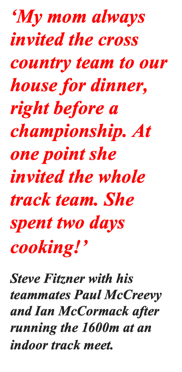 ‘The best time I had was running cross country. All my teammates lived in the dorms, but I lived at home. So, we had a tradition, right before we went for a championship, my mom, who is from Germany liked seeing all the guys from all over the world as it reminded her of Europe, so she invited all to our house for dinner. The students felt like they had a chance to be home. It was not just the cross-country team, but the entire track team at one point. There were about 30 students in our house. She spent two days cooking. There were a couple of guys from Germany. So, she liked talking to them. We had students from Germany, Ireland, Sweden, and a lot of students from the U.S. I am still in touch with them, the magic of Facebook. We went to Crazy Jose’s to hang out. Now I see the present cross-country team hang out at Starbucks right before a game. The tradition goes on.’
