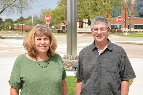 Carter Ernst and Paul Kittelson designed and created Cardinal Column specifically for Lamar University. The artists toured campus in May 2019 to get a feel for the campus and the site for the sculpture. They wanted to create a work of art that would be interactive and recognizable as visitors approach campus from Rolfe Christopher. The bird nest concept was an ideal choice with its reference to Lamar’s cardinal mascot. The artists created a similar bird nest sculpture for Hobby Airport in Houston.