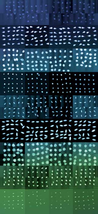 She created these photographs as lenticular prints that change colors as the viewer moves past them. “This tension between stillness of the print and the changing of the color reflects my focus on the elusive goal of stopping time in living materials as well as the drying process central to the methodology of saving seeds.