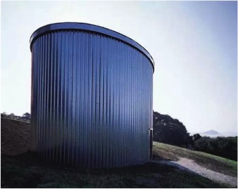 In 1999 James Turrell was commissioned by his art dealer Michael Hue-Williams to build a temporary Skyspace on a hillside in the Tremenheere Sculpture Garden in Cornwall County, England. The structure was built as an observatory for viewing a total solar eclipse scheduled to occur August 11, 1999. The Skyspace, named Elliptical Ecliptic, was designed in an elliptical shape approximately 33 feet across at the widest point. The structure was 19 feet tall with a metal exterior. The interior had a pea gravel floor and a viewing bench circling the inner walls. The ceiling aperture was Turrell’s first in an oval rather than rectangular shape. In days prior to the eclipse, the aperture was covered with a tarp containing a single round hole. Turrell essentially turned the space into a large camera obscura, also known as a pinhole camera. A viewing platform was mounted inside so the two-minute eclipse could be safely observed as a projection.