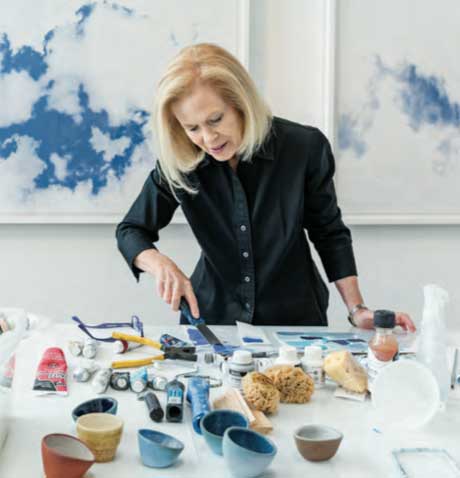 Winter used an experimental aquatint process to create the copper plate for this etching series which references both waterfall and cloud images she has used in other works. She also developed several unique ink colors to represent the subtle shifts in color caused by sunlight at different times of day. Winter collaborated with master printer Katherine Brimberry of Flatbed Press in Austin for this project.