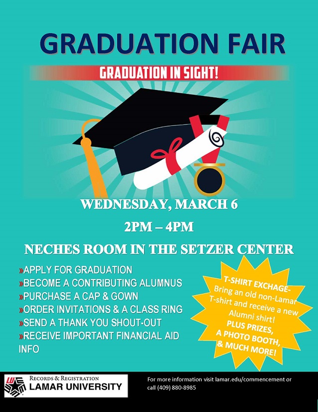 Your time at Lamar University will be full of unforgettable moments, and the greatest of these is the day you graduate. It is our honor to celebrate this milestone with you and congratulate you on this great accomplishment.