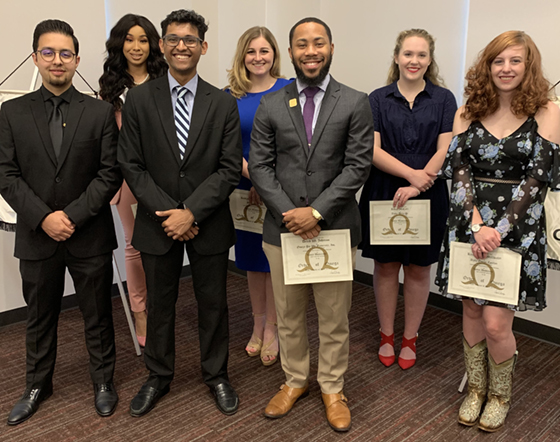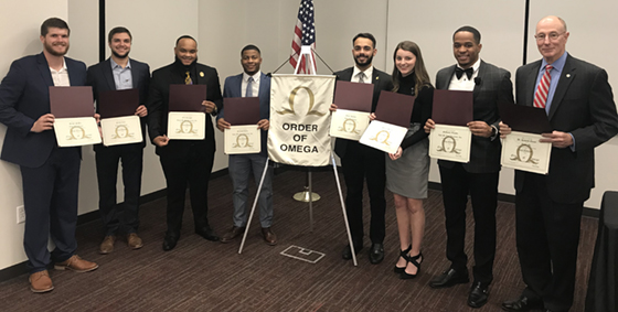 Brody McBee, Jordan Curl, Oris Granger, Jeremiah Kelly, Omar Hamza, Shelby Harris, McDaniel Osondu. Honorary Initiate: Dr. Kenneth Evans. Not pictured: Rosa Martinez