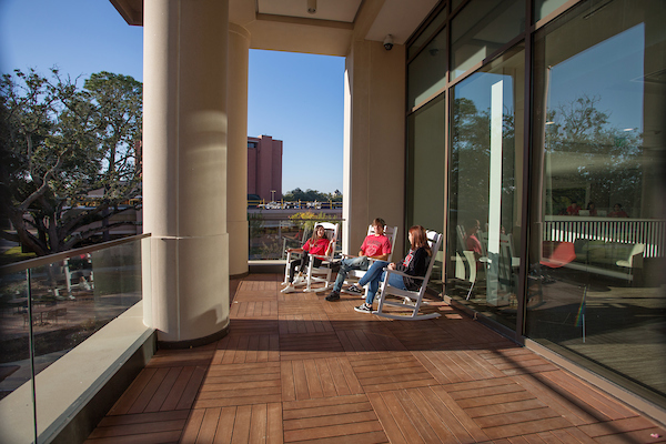 Outdoors: The Quad under the trees – the Gazebo between Maes and Education – the shaded benches between Hayes and HHPA - the pond at the John Gray Center (say hi to the ducks!) – the courtyard by the Science Auditorium – Cardinal Park in front of Monroe Hall – the patio at the Rec – the veranda at the Set (with bonus rocking chairs!)